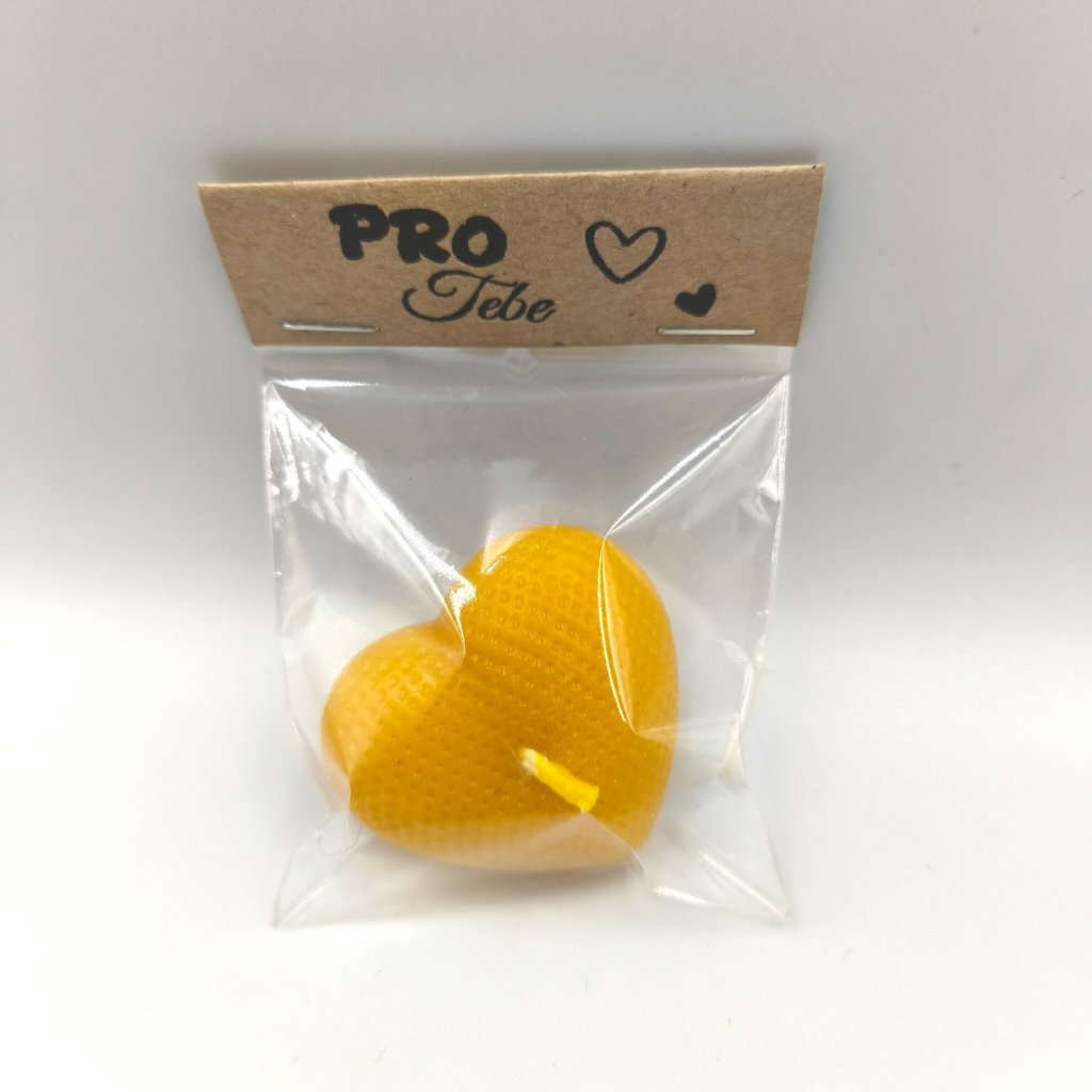 Malá srdíčková svíčka pečlivě zabalená v celofánu s visačkou "Pro Tebe". Drobnost, která potěší - jako milý dárek z lásky, pozornost pro svatební hosty nebo jen tak pro radost.