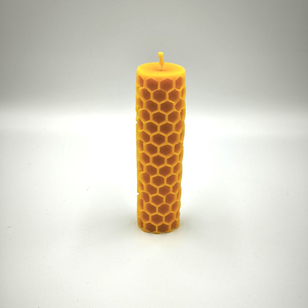 Dekorativní svíčka ze včelího vosku s motivem včelích buněk. Plastická struktura dodává svíčce výrazný, ale přirozený vzhled, který krásně zapadne do každého interiéru, Ručně odlévaná z čistého včelího vosku bez chemických přísad. Při hoření vydává jemnou vůni medu, hoří klidně a dlouho. Každý kus je originál, který nese otisk přírody i poctivé ruční práce.