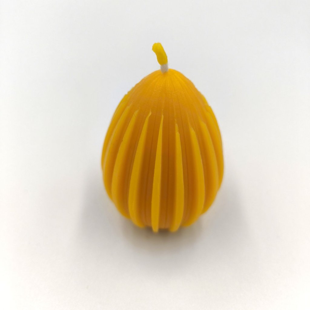Dekorativní svíčka ze včelího vosku ve tvaru vajíčka s jemnými svislými proužky. Jednoduchý, ale elegantní design krásně vynikne zejména v jarní a velikonoční výzdobě.