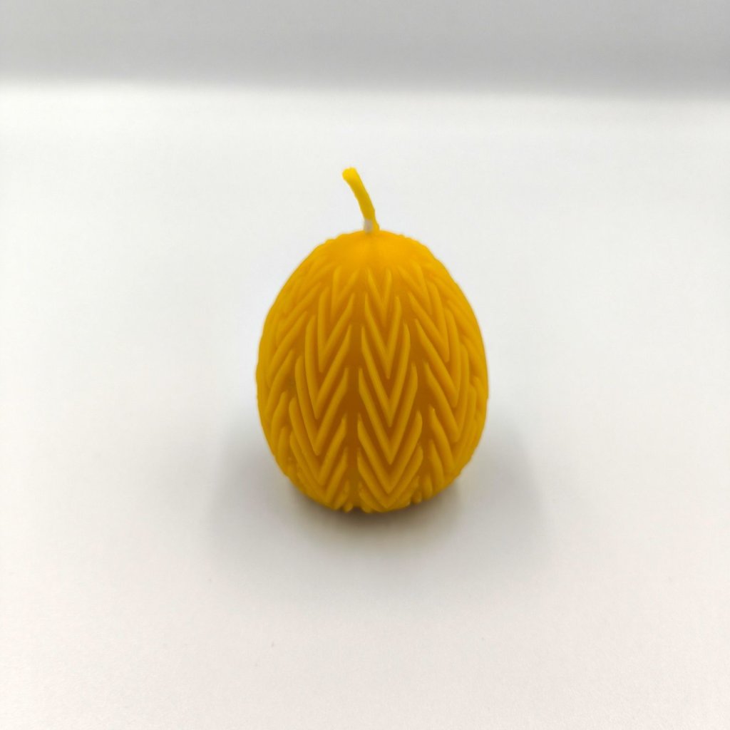 Ručně vyráběná svíčka ze včelího vosku ve tvaru vajíčka s reliéfním vzorem. Díky své struktuře působí velmi přirozeně a zároveň dekorativně. Krásně vynikne samostatně i jako součást jarní či velikonoční výzdoby. Každý kus je originál, který do domova přináší teplo, klid a kousek přírody.
